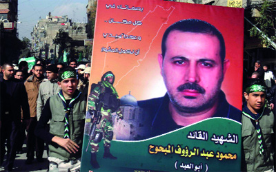 مسيرة ترفع صور المبحوح. أ.ب - أرشيفية