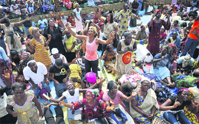 عاجيات يدعون بحفظ بلادهن من أخطار الحرب بميدان في أبيدجان. أف.ب