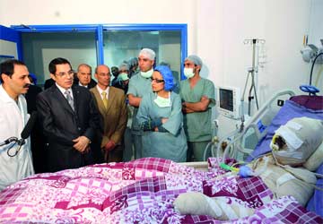 من جهة أخرى، قام الرئيس التونسي بزيارة محمد البوعزيزي الشاب الذي أقدم على إحراق نفسه وأصيب بحروق خطرة نقل على اثرها إلى مستشفى الحروق البليغة في بن عروس في الضاحية الجنوبية للعاصمة.