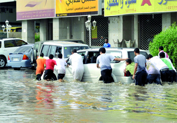 شهدت محافظة جدة أمس أمطاراً غزيرة مصحوبة بعواصف رعدية، حيث امتلأت الشوارع والطرقات بمياه الأمطار، وأعلن الناطق الرسمي لإدارة الدفاع المدني في منطقة مكة الرائد عبدالله العمري، أنه تم إنقاذ ثلاث نساء وطفلين بواسطة الطيران العمودي من سطح أحد المنازل المغمورة بالمياه. وقال العمري، إن مياه الأمطار غمرت احد المجمعات السكنية في جدة وحجزت السكان في الأدوار العلوية، حيث تم إنقاذ المحتجزين بالقوارب المطاطية والطيران العمودي. وأعلنت هيئة الطيران المدني الطوارئ في مطاري المدينة وجدة، كما أدت أمطار مكة المكرمة إلى إغلاق أربعة طرق رئيسة، الأمر الذي دعا إلى إعلان حالة الطوارئ.