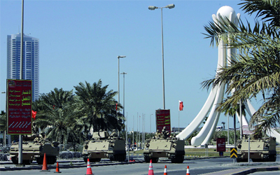 دبابات الجيش البحريني تنسحب من منطقة دوار اللؤلؤة في المنامة. أ.ف.ب