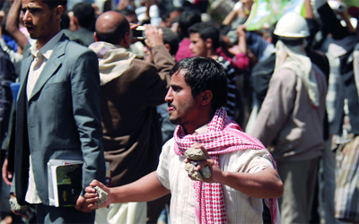 تظاهر نحو 500 شخص أمام جامعة صنعاء في العاصمة اليمنية لليوم التاسع أمس، مطالبين بالإطاحة بالرئيس علي عبدالله صالح، وفيما انسحب 10 نواب من كتلة المؤتمر الشعبي العام الحاكم احتجاجا، استقال محافظ عدن عدنان الجفري، بسبب ازدياد الاحتجاجات.