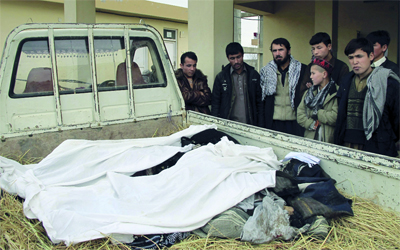 أفغان يشاهدون جثث ضحايا قتلوا في قندوز. أ.ب