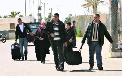 فلسطينيون بعد عبورهم معبر رفح إلى غزة. أ.ف.ب