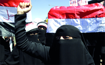يمنية أثناء مشاركتها في «جمعة الانطلاق». رويترز