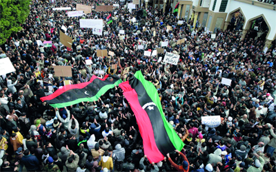 استمرت المواجهة في ليبيا، أمس، حيث لم يضعف تصميم معارضي الزعيم الليبي معمر القذافي على الاطاحة به، في الوقت الذي لايزال فيه القذافي يسيطر على العاصمة طرابلس. وفي المستوى الدبلوماسي اشتد الضغط الدولي في اليوم الـ12 للانتفاضة على النظام، بين عقوبات اميركية وتشديد من مجلس الامن واوروبا لاصدار عقوبات اشد، وسط حديث عن جرائم ضد الانسانية، في حين قال رئيس الوزراء الايطالي، سيلفيو برلسكوني، ان القذافي لم يعد يسيطر على الوضع في ليبيا.