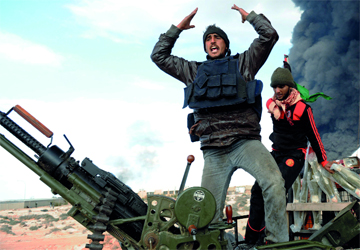 أحد الثوار خلال مواجهات راس لانوف. أ.ف.ب