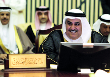 وزير الخارجية البحريني الشيخ خالد بن أحمد بن محمد آل خليفة خلال الاجتماع. رويترز