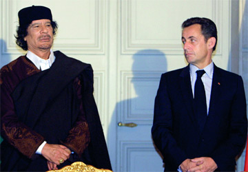 القذافي وساركوزي في صورة أرشيفية. أ.ف.ب