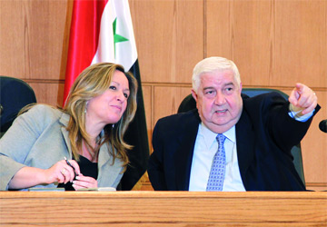 وقال وزير الخارجية السوري وليد المعلم، في مؤتمر صحافي مع نظيرته الاسبانية ترينيداد خيمينث في دمشق، إن «سورية تقف، من حيث المبدأ، ضد التدخل الأجنبي العسكري في المنطقة، وهذا لا يعني أن هذا الموقف لمصلحة طرف ضد آخر».