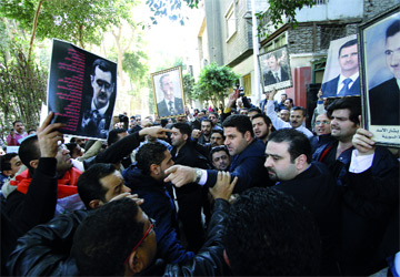 مؤيدون ومعارضون للرئيس السوري في اشتباك أمام السفارة السورية بالقاهرة. أ.ب