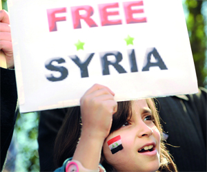 طفلة سورية خلال تظاهرة في لندن. أ.ف.ب