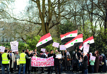 سوريون في لندن خرجوا تعاطفاً مع احتجاجات درعا. أ.ف.ب
