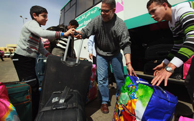عائلة مصرية تغادر الأراضي الليبية براً. غيتي