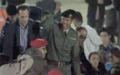 بث التلفزيون الليبي مساء أول من أمس، صوراً «مباشرة» تظهر خميس القذافي، نجل الزعيم الليبي معمر القذافي، في باب العزيزية بطرابلس بعد شائعات عن مقتله.