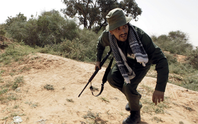 الثوار يخشون ألغام قوات القذافي. رويترز
