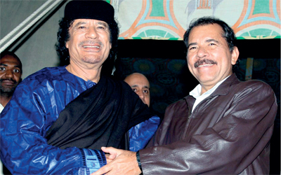 أورتيغا (يمين) طلب من مستشاره تمثيل القذافي في الأمم المتحدة. أ.ب