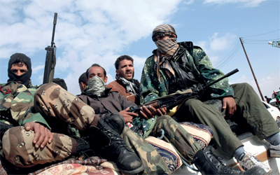 ثوار ليبيون بالقرب من مدينة البريقة. أ.ف.ب