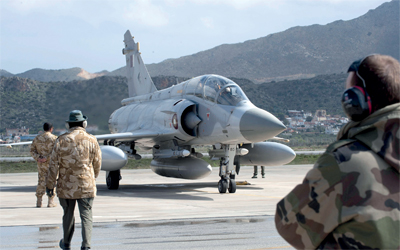 «ميراج» فرنسية تتأهب للقيام بإحدى الطلعات في ليبيا. إي.بي.أيه
