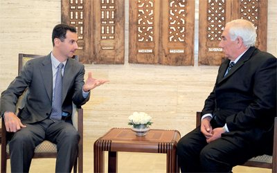الهنوس أثناء لقاء مع الأسد منذ أسبوعين. أ.ف.