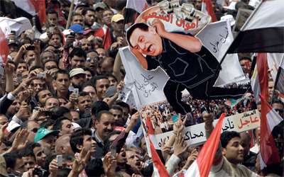 طالب مئات الألوف من المتظاهرين في مصر أمس، بمحاكمة الرئيس السابق حسني مبارك، بتهمة قتل مئات النشطاء واصابة ألوف آخرين خلال الاحتجاجات التي أرغمته على التنحي في فبراير الماضي. وقال خطيب الجمعة في ميدان التحرير صفوت حجازي، للحشود «جئنا اليوم لنوجه رسالة الى العالم بأن الثورة لن تهدأ إلا إذا بردت دماء الشهداء، ولن تهدأ أرواحهم وتبرد دماؤهم إلا بمحاكمة الرئيس المخلوع الفاسد».