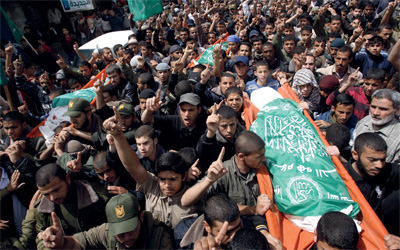 فلسطينيون يشيعون جثمان قسامي. أ.ب