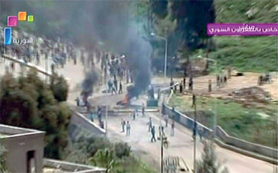 صورة بثها التلفزيون السوري للأحداث في درعا. أ.ف.ب