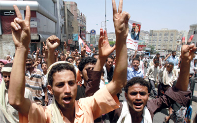 تظاهر آلاف اليمنيين الغاضبين، أمس، في مدينة تعز جنوب العاصمة صنعاء، احتجاجا على إطلاق قوات الأمن النار، ما أوقع الجمعة أربعة قتلى و116 جريحا، بين المتظاهرين المطالبين برحيل الرئيس اليمني علي عبدالله صالح. فيما شل إضراب الحركة في مدينة عدن، جنوب اليمن، احتجاجا على نظام صالح. في وقت استدعت فيه صنعاء سفيرها في قطر للتشاور، بعدما دعا رئيس الوزراء القطري الشيخ حمد بن جاسم آل ثاني إلى تنحي صالح، في سياق وساطة خليجية لحل الأزمة اليمنية.