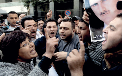 تلاسن بين مؤيدي الأسد ومعارضيه خلال تظاهرة في بيروت. أ.ب