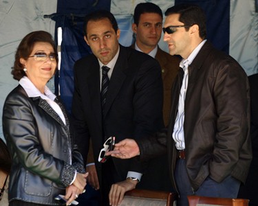 سوزان مبارك برفقة نجليها-أرشيفية/أ.ف.ب