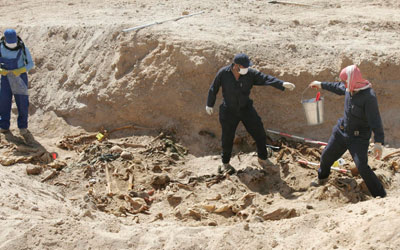 وقال محققون عراقيون وآخرون من منظمات حقوق أميركية في عام 2003 انهم يشتبهون في أن العراق به ما يصل الى 260 مقبرة جماعية، تضم رفات ما يصل الى 300 الف شخص قتلوا خلال حكم صدام.