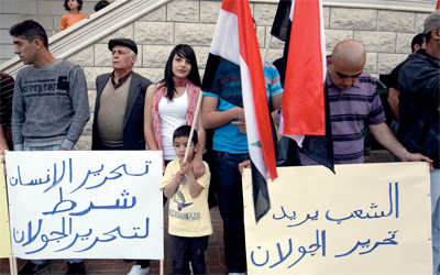 متظاهرون من مجدل شمس يشاركون في الاحتجاجات السورية. أ.ف.ب