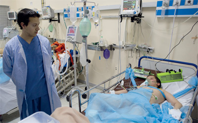 صبي مصاب أثناء علاجه بمستشفى الحكمة في مصراتة. أ.ف.ب