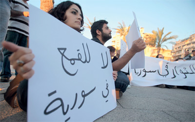 احتجاج طلابي سوري في العاصمة اللبنانية بيروت. رويترز