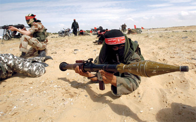 تدريبات لعناصر من الجبهة الديمقراطية لتحرير فلسطين في رفح. رويترز