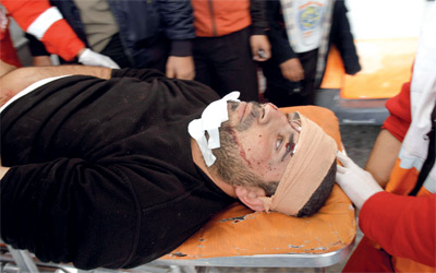 فلسطينيون يسعفون أحد المصابين في غزة. أ.ف.ب