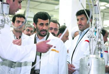 الرئيس الإيراني أحمدي نجاد يزور أحد المواقع النووية الإيرانية . أ ب