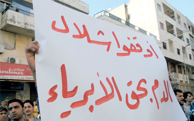 جانب من تظاهرة الاحتجاج ضد النـــــــــــــــــــــــــــــــــــظام في مدينة بانياس. أ.ف.ب