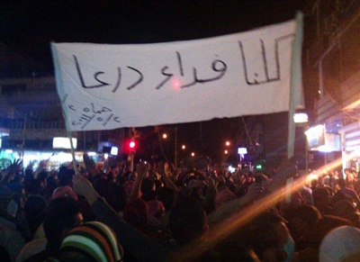 تظاهرة تضامنية مع درعا في مدينة حماة السورية أمس-أ.ف.ب