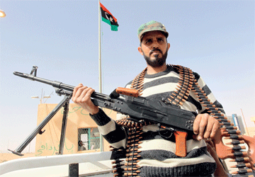أحد الثوار في معبر وازن الحدودي مع تونس عقب استعادة السيطرة عليه. أ.ف.ب