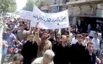 وأشار الى «مظاهرة شارك فيها نحو 1000 شخص في منطقة الدرباسية (50 كلم غرب القامشلي) اطلقت شعارات بينها (لا جماعة ولا احزاب ثورتنا ثورة شباب)».