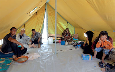 إحدى الأسر الليبية الفارة من جحيم المعارك. إي.بي.إيه