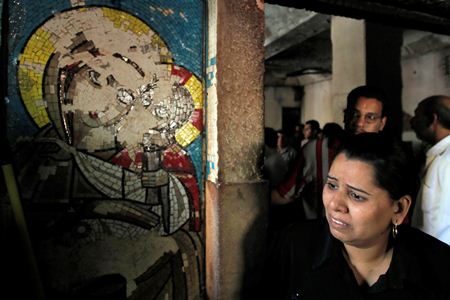 سيدة مصرية تتفقد الأضرار التي لحقت بكنيسة "مارمينا" - رويترز