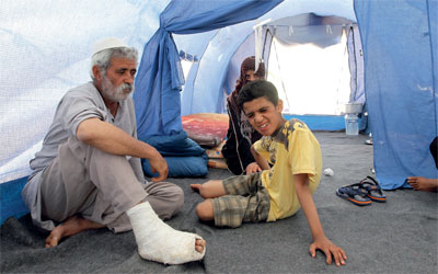 إحدى الأسر الليبية التي فرّت من جحيم الوضع لتعاني مأساة النزوح. إي.بي.إيه