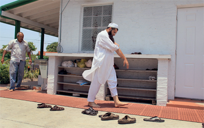 أكرم خان أثناء ذهابه إلى الصلاة في مسجد ميامي. غيتي