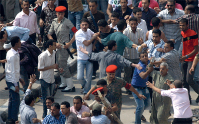 الجيش فضّ مواجهات المسلمين والأقباط أمام مبنى التلفزيون. أ.ب