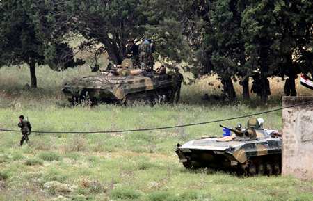 دبابات الجيش السوري تنتشر في محيط بلدة العريضة المحاذية للحدود اللبنانية-رويترز