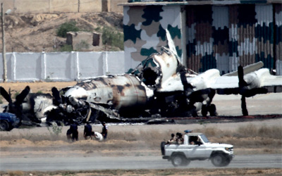 طائرة مدمرة في قاعدة «مهران» بعد السيطرة عليها. أ.ب