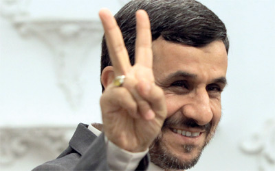 نجاد يرفع شارة النصر قبل لقاء وزير الطاقة الأرمني. أ.ف.ب
