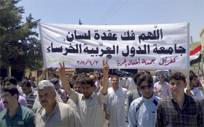 تظاهرة كفرنبل في إدلب تطالب الجامعة العربية بكسر الصمت عما يجري في سورية. أ.ب
